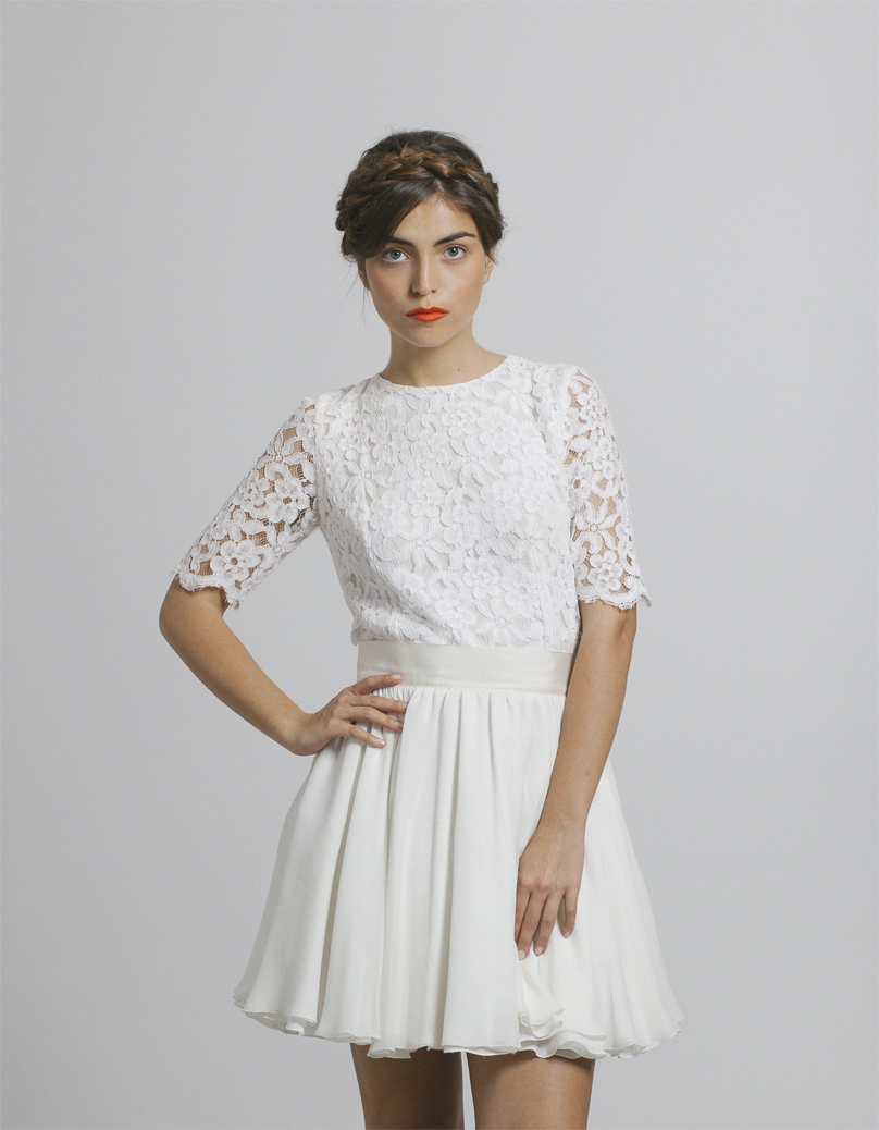MaisonFloretNed Publié 17 janvier 2016 à 808 × 1038 dans VIVE LES MARIES#12 OUI MONSIEUR LE MAIRE ← Précédent Suivant → Robe courte guipure et crêpe georgette Ned, Maison Floret